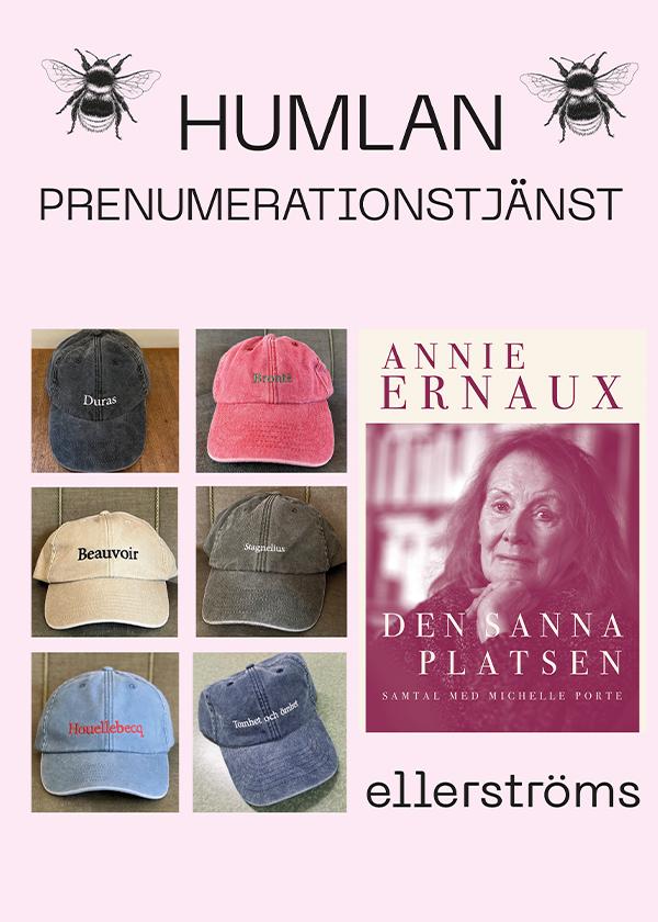 Du får din första bok, Annie Ernaux Den sanna platsen, samt kepsen, skickad med post så snart du tecknat din prenumeration. Därefter skickas ytterligare tre böcker till dig, innan de når handeln, under det första halvåret 2026.