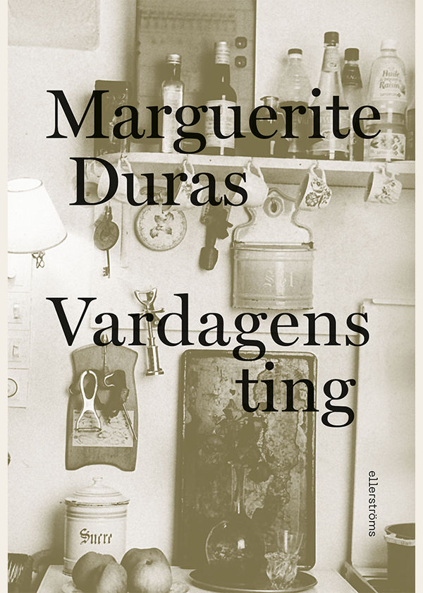 I Vardagens ting berättar Marguerite Duras i ett femtiotal korta texter om centrala platser och händelser i sitt liv. Om, kärlek, alkoholism, skam och orättvisor – och förstås om att skriva. Själv liknar hon boken vid en stor väg som vill gå överallt på samma gång – en rörlig och levande text, vare sig hon skriver om mötet mellan könen eller om kontroversiella händelser i bokens samtid. Vardagens ting kom till i samarbete med vännen Jérôme Beaujour och är ett av Duras mest orädda och omtyckta verk. Boken gavs ut på franska 1988, översattes till svenska av Katarina Frostenson 1989, men har sedan länge varit slutsåld. Nu ges den äntligen ut igen, i reviderad översättning och med ett nyskrivet förord av Katarina Frostenson.